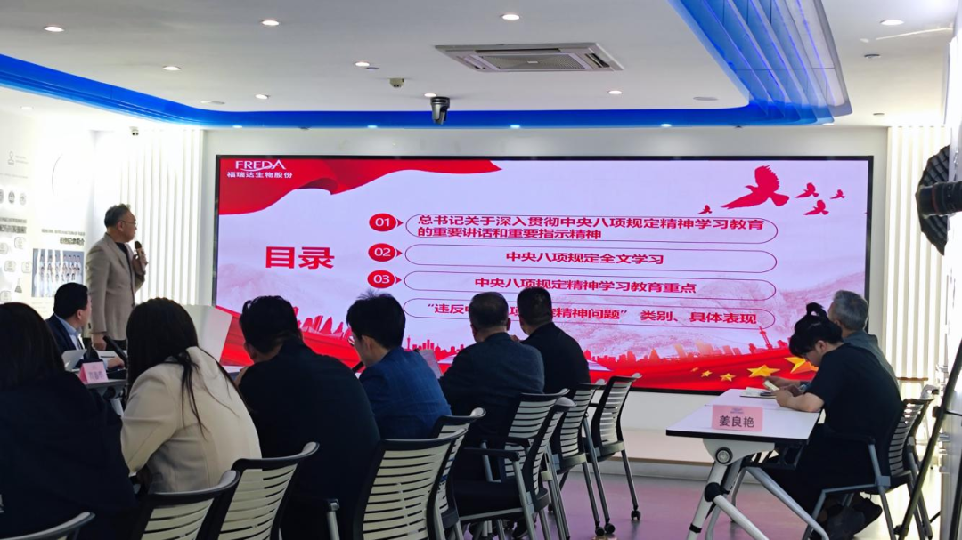 (乐动在线登录官网党委委员、副总经理,乐动在线登录官网生物股份董事长、总经理高春明围绕八项规定精神学习教育讲授党课)