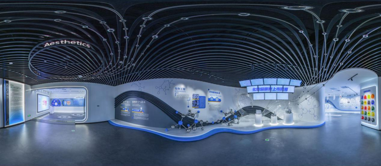 设置化妆品、生物医药知识科普区,通过图文、模型、视频解析成分原理与生产工艺以及互动体验项目,深化科学认知。