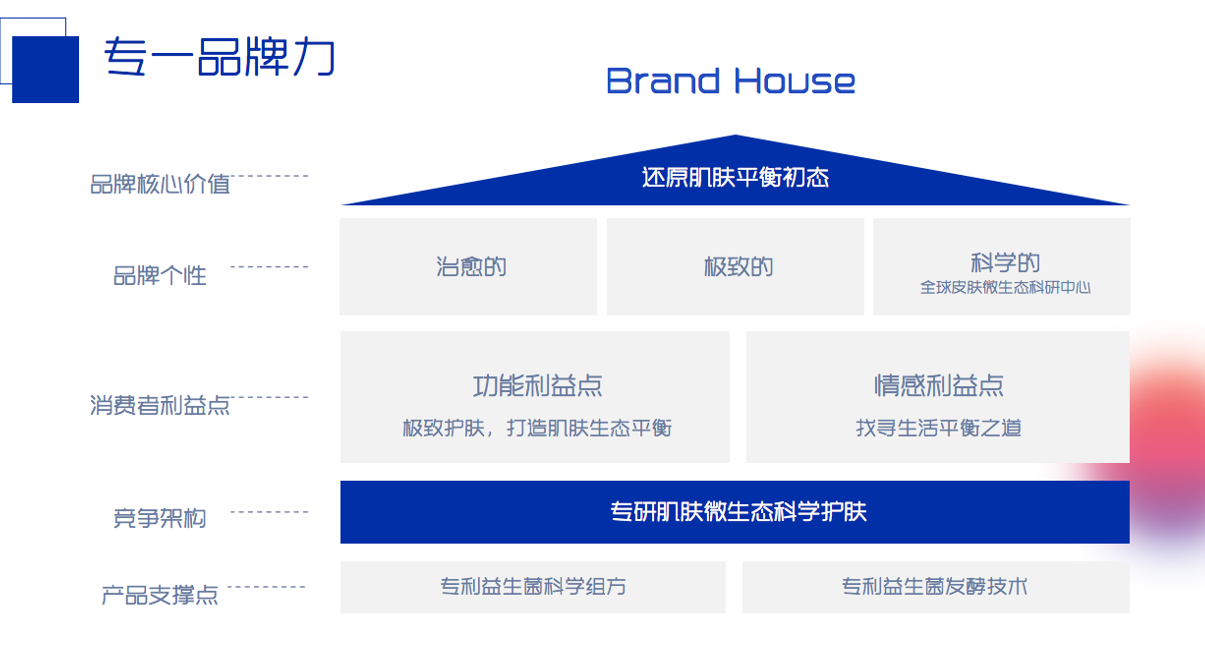 李婷提出瑷尔博士产品开发思路归结为八个字:品牌在左、研发在右。如何让品牌的所有要素都有一条主线贯穿,所有的事都是一件事,那就是构建品牌的“上层建筑”,所有产品开发都围绕着品牌屋进行。瑷尔博士以专研微生态科学护肤为定位,以专利益生菌科学组方和专利益生菌发酵技术为产品支撑,以品牌屋作为产品开发的骨架,让品牌能够始终以统一的声音讲述一件事。