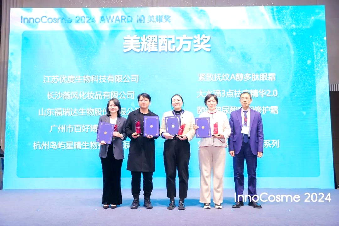 “InnoCosme Awards 美耀奖”是InnoCosme 组委匠心打造的权威美业奖项。该奖项由业内权威专家、结合大众评审从多个维度,公平、公正、公开地评选出来自多个赛道的优秀产品。"InnoCosme Awards 美耀奖2024"共设置五大奖项,分别为美耀年度原料奖、美耀年度配方奖、美耀年度影响力媒体奖、美耀年度服务楷模奖、美耀年度匠心工程师奖。