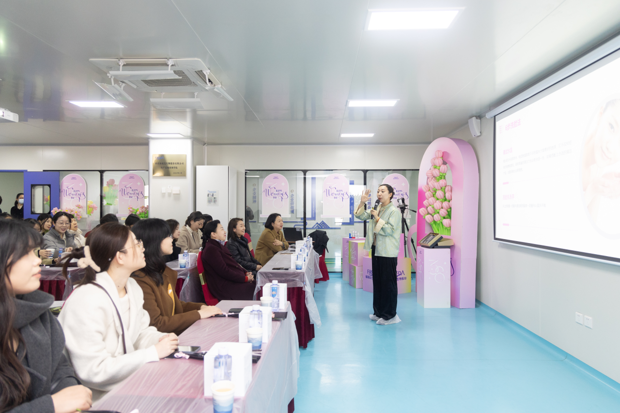 随后,公司品牌培训讲师李羽带领来访人员开展护肤知识讲座及产品体验活动。讲座内容包含皮肤的构成、日常易出现的问题、皮肤保养和修护等话题,使大家了解到正确日常护肤小知识。李羽与来访人员现场互动,针对提出的问题逐一给予解答,同时提供了公司产品试用,获得广泛好评。