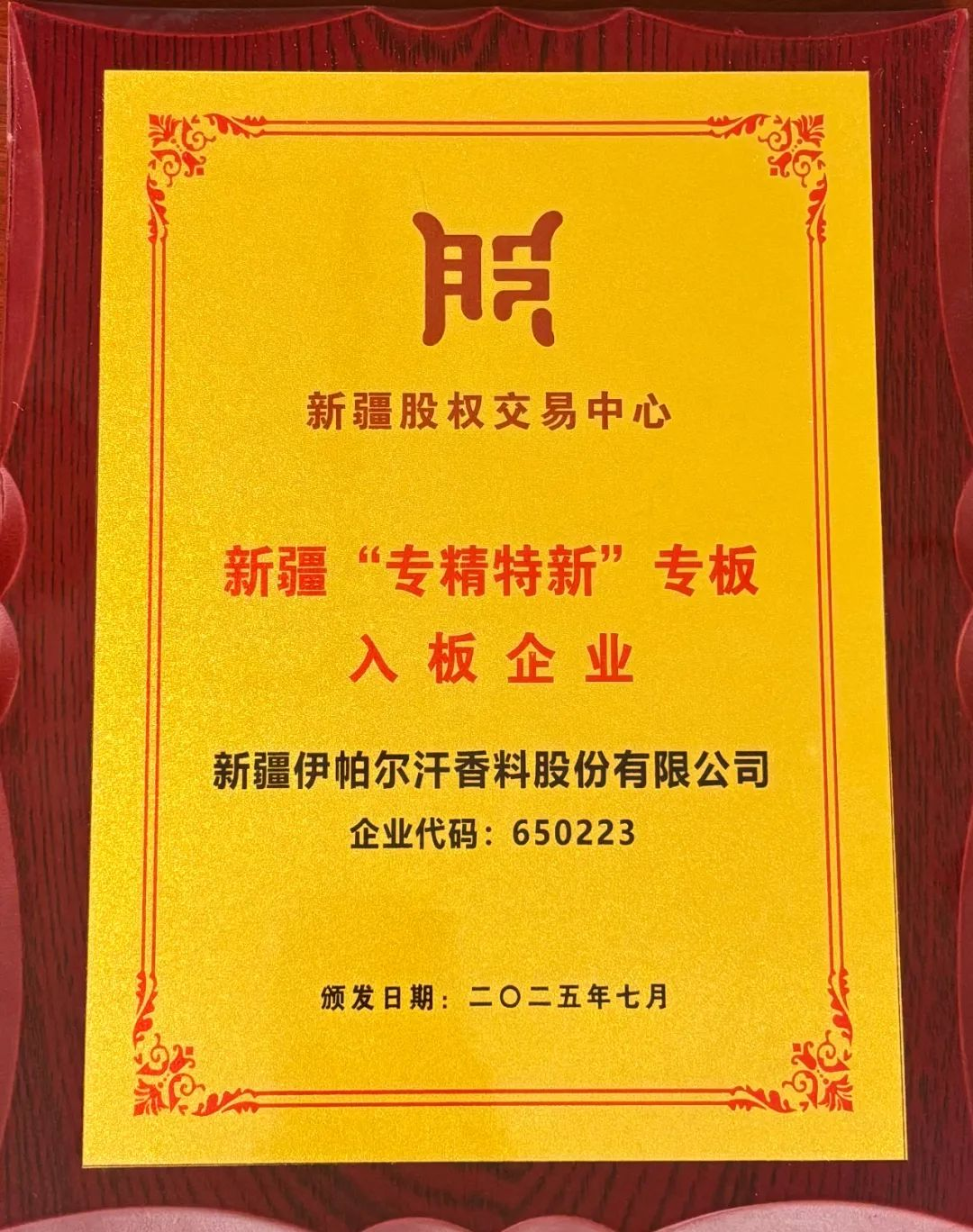 2025年7月29日,2025年新疆“专精特新”专板企业集体入板仪式暨“天山行动∙新银兵地行”系列活动在乌鲁木齐盛大启幕。作为中国芳香产业的领军品牌,新疆伊帕尔汗香料股份有限公司凭借在细分领域的创新突破与全产业链优势,成功入选自治区第二批“专精特新”专板企业名单,更同步通过2025年度兵团“专精特新”中小企业复审,并获批2025年创新型中小企业认定。三项权威认证的叠加,标志伊帕尔汗已构建起“创新驱动、全链引领、品牌升维”的立体化发展格局,成为新疆中小企业“专精特新”梯度培育的典范。