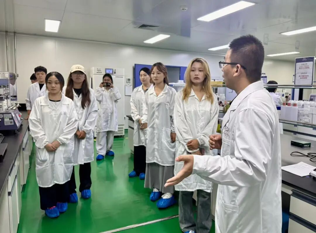 在包材检测环节,学子们亲自动手参与压力达标测试、抗疲劳测试、真空测试与开盒力测试,直观感受到包材质量对产品安全的重要影响;进入产品检测环节,从通过感官检测(含镜检)观察产品外观、气味是否符合标准,到运用专业仪器开展 pH 值检验、相对密度检验、折光率检验,再到参与微生物灭菌前的准备工作,学子们全程沉浸式体验了化妆品从原料到成品的完整检测流程。过程中,专业人员同步讲解每一项检测的标准与背后的意义,让学子们不仅掌握了实用的检测方法,更深刻理解了 “每一项数据都关乎产品安全” 的质量管理理念。此次活动不仅搭建起校企沟通的坚实桥梁,更借助学子们的亲身体验,传递出企业对质量管控的严谨态度,进一步强化了公众对乐动在线登录官网产品品质的信任。